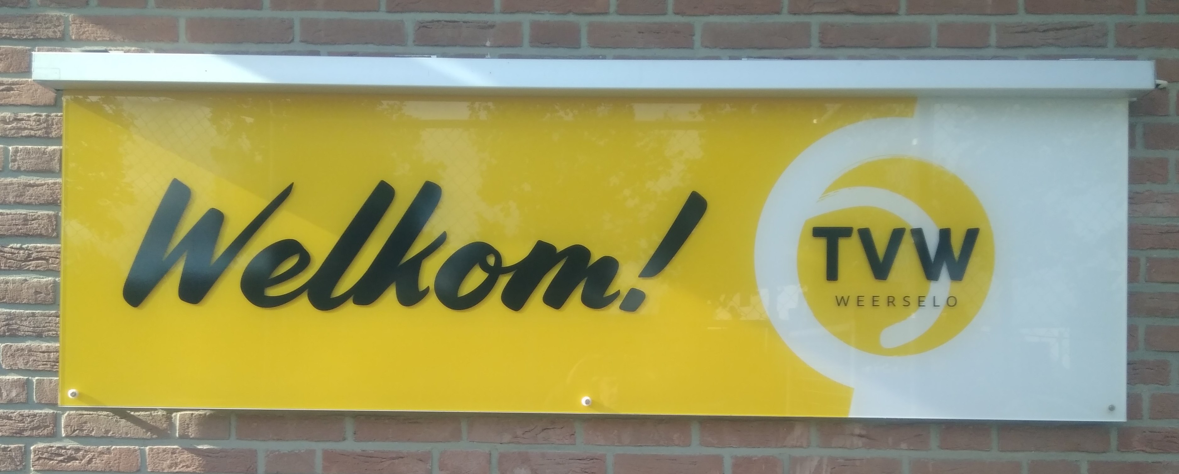 Op het bord bij de ingang van het tennispark is het nieuwe logo geplaatst!